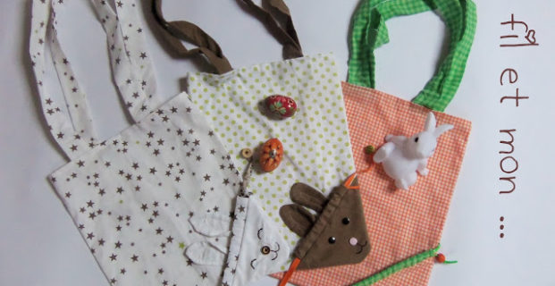 Tuto et pas à pas en photos pour réaliser un sac Lapin sur le modèle du sac Ecolo soit un sac qui se range dans une pochette intégrée et qui s’utilise à volonté et surtout pour ramasser les chocolats le jour J !